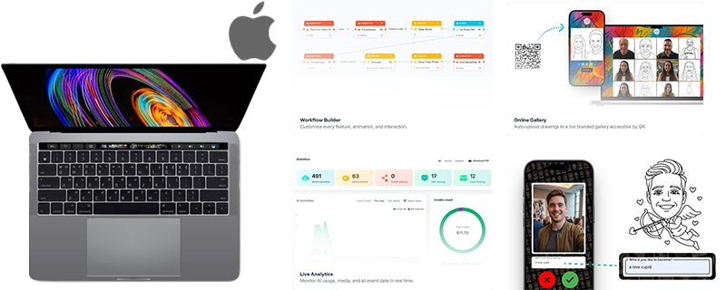 AI 분석 시스템, 로봇 드로잉 장비, 운영 인터페이스가 결합된 통합 이벤트 솔루션입니다.