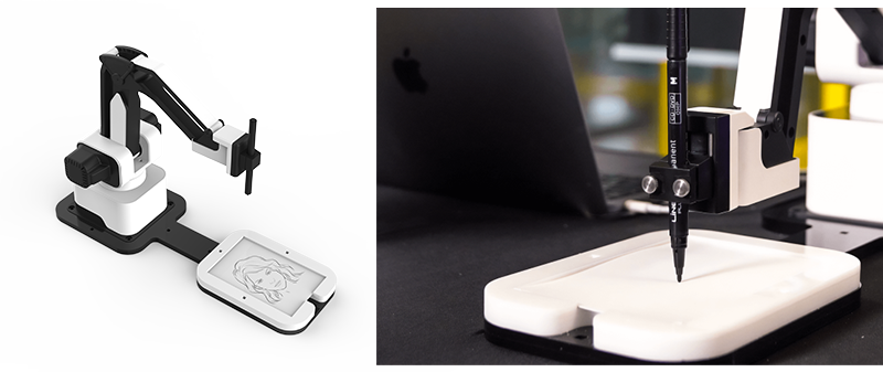 AI가 생성한 드로잉 데이터를 기반으로 실제 종이에 그림을 그리는 로봇 장비입니다.